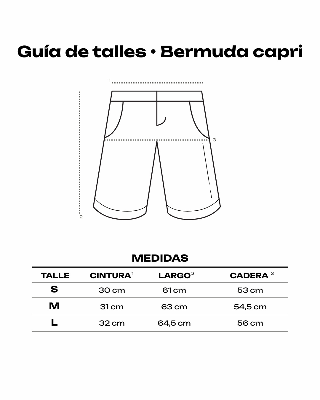 Corte oversize tipo capri, con caída relajada y calce amplio.