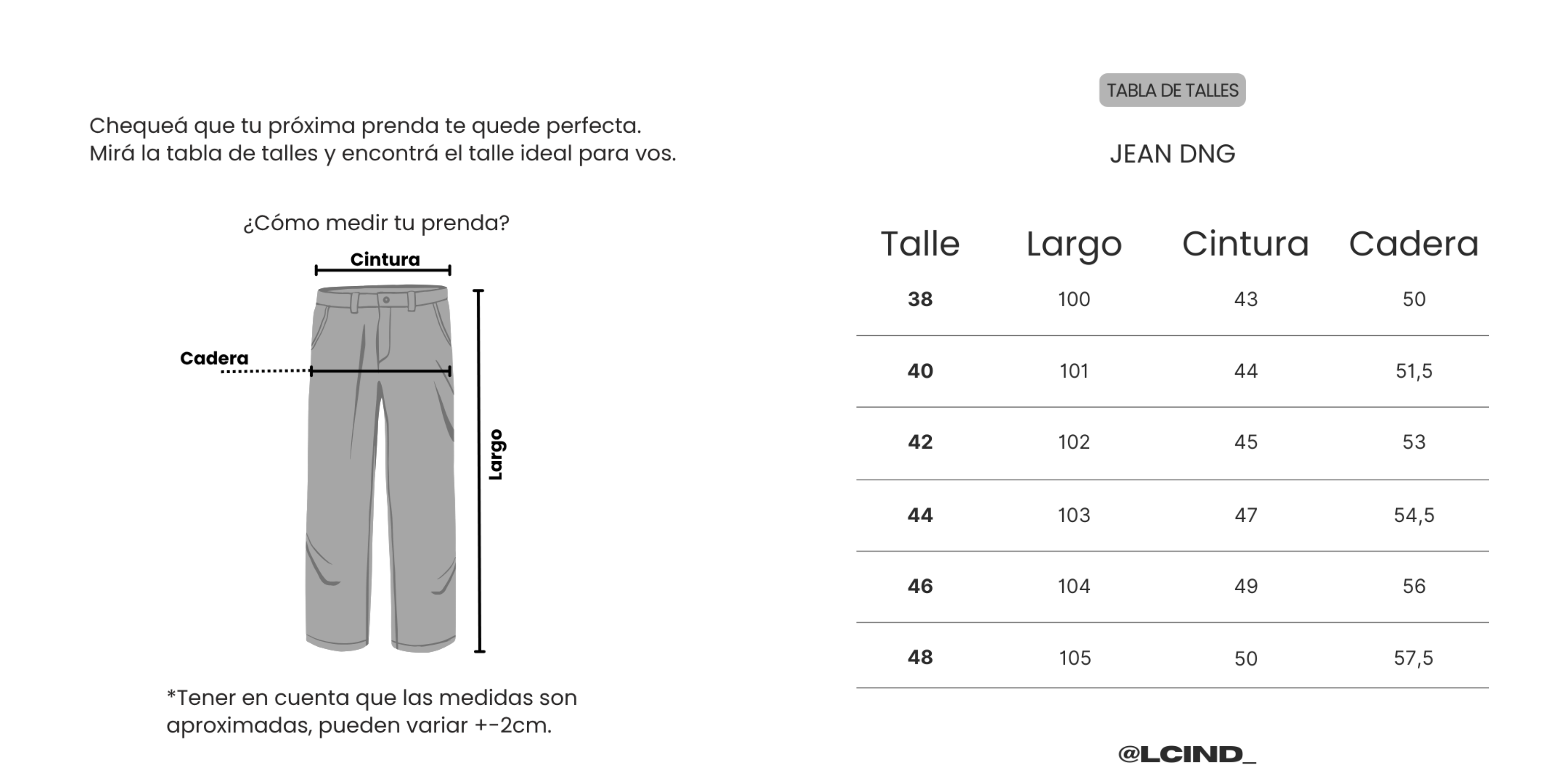 El modelo mide 1,84 pesa 80kg y usa talle 44